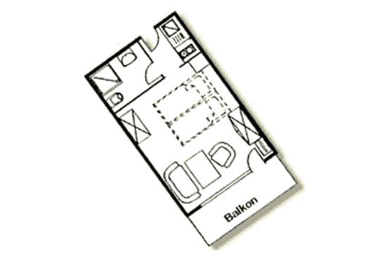 Die Wohnung hat einen Wohn-/Schlafraum, eine separate, voll ausgestattete Küchenzeile (2-Plattenherd + Microwelle), Dusche/WC und Süd-Balkon. Tisch- und Bettwäsche sowie Handtücher werden selbstverständlich kostenlos gestellt. Fernseher mit Sat-TV, Zimmersafe, Radiowecker, Wasserkocher, Toaster, Haarfön, Kosmetikspiegel etc. Pkw-Stellplatz am Haus. Auf Wunsch Brötchenservice.
